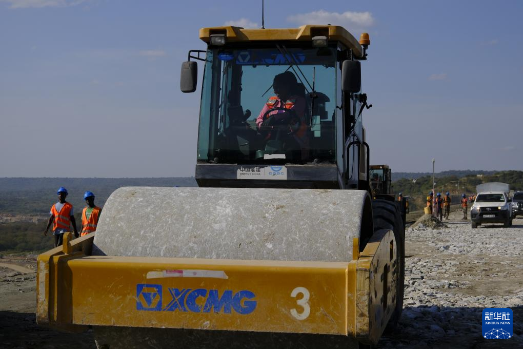 6月17日,在肯尼亚南部马库埃尼的斯瓦克大坝工地,一名肯尼亚压路机手现场作业。(图片来源:新华社)