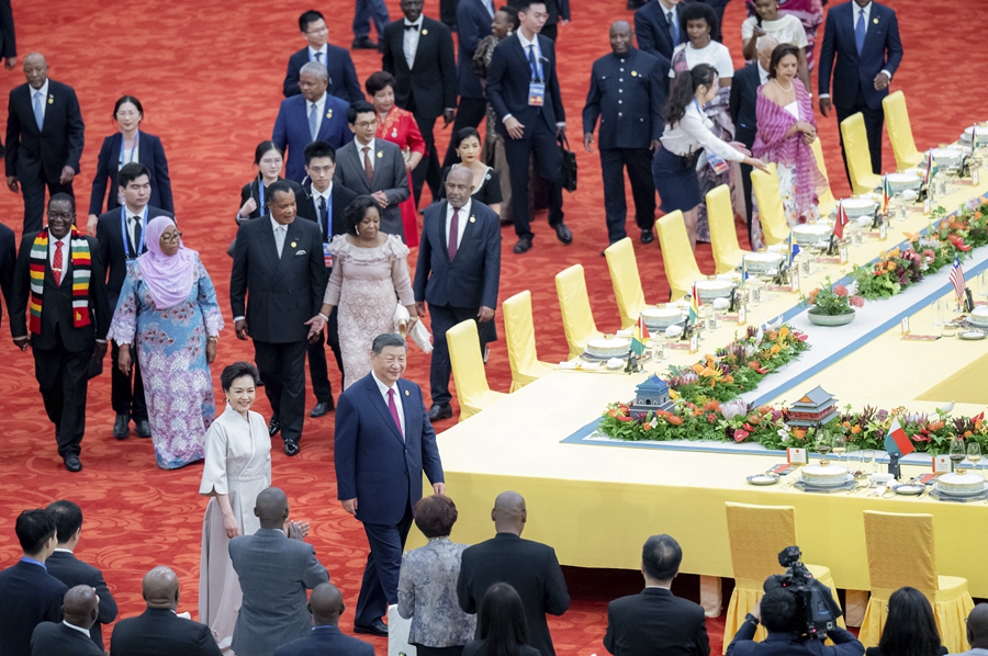 9月4日晚,国家主席习近平和夫人彭丽媛在北京人民大会堂举行宴会,欢迎来华出席中非合作论坛北京峰会的非方及国际贵宾。