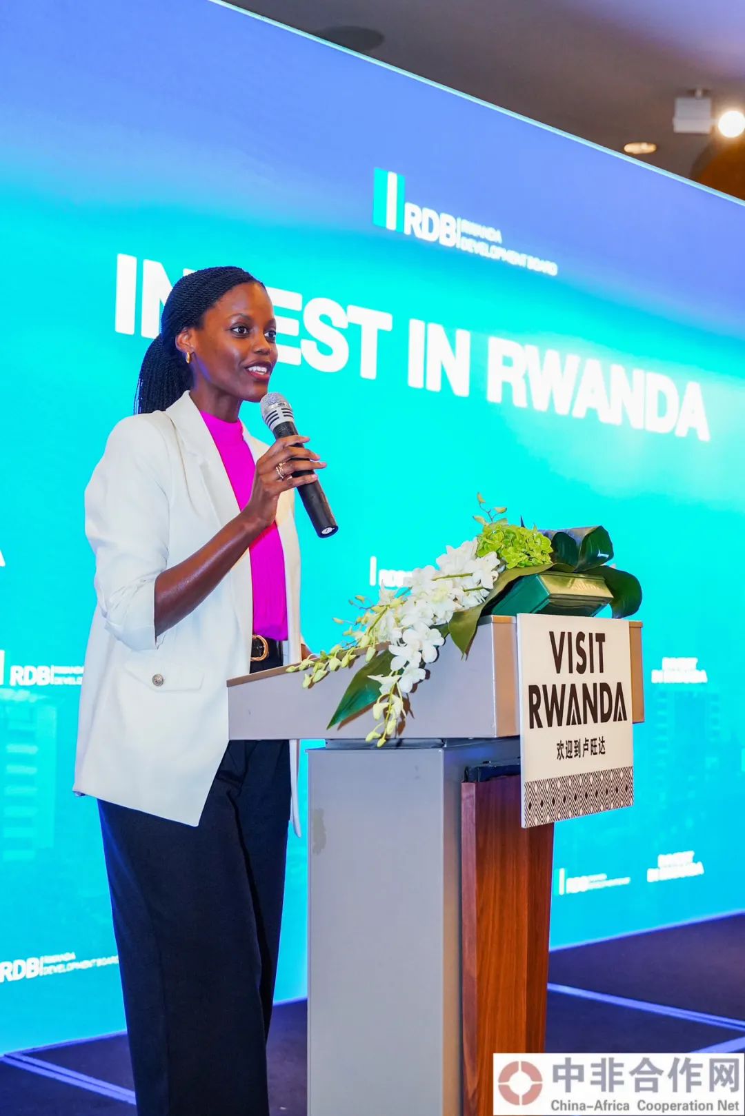 卢旺达发展委员会投资促进部主任Alice Nikuze女士详细介绍了卢旺达的投资政策法规和具体合作项目。