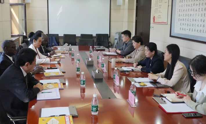 4月22日上午,南非文达大学代表团一行五人访问中国外文局欧非中心。代表团由校长伯纳德·恩塔姆贝莱尼教授率领,成员包括绿色科技孔子学院外方院长埃里克·玛鲁塔博士、中方院长葛瑞红教授,国际处副处长塔博·迪克加勒博士及校长办公室王于晨主任。欧非中心主任赵丽君、副总编辑张娟及非洲传播部代表参会。