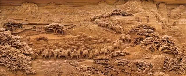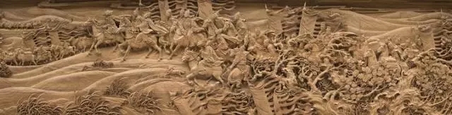 此篇重点展现陆上丝绸之路和海上丝绸之路的历史画卷。作品雕刻技法包括浅浮雕、深浮雕、镂空雕、圆雕等,一是用四大主题木雕,以古丝绸之路、张骞出使西域、茶马古道、郑和下西洋的历史为背景,全面展现丝绸之路上的政治、文化交流和商贸繁荣,同时艺术地反映丝绸之路的自然风光,水土风物;二是重点刻画历史阶段中的重要人物和及其贡献。人物独立成篇,排列成组。做到历史人物真实,史实清楚,刻画准确。跨越千年的历史人物从丝路记忆中走来,大漠风沙,雪域高寒拦不住各国人民沟通交流、传播和平的步伐,画面中激荡着民族精神,闪耀着和平、开放与智慧之光;作品以一个个鲜活的历史人物,及背后的丰满的时代背景,展现丝路的艰辛开辟,曲折前行,更展现贯穿其中绵延至今的“丝路精神”。