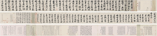 拍场上最著名的宋代书法作品要数2010年在北京保利以4.368亿成交的黄庭坚《砥柱铭》,刷新了当时中国艺术品拍卖的最高成交价,甚至远远超过2005年伦敦佳士得“元青花鬼谷下山大罐”创下的2.3亿元中国艺术品成交世界纪录。