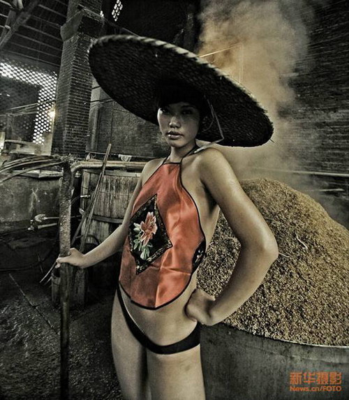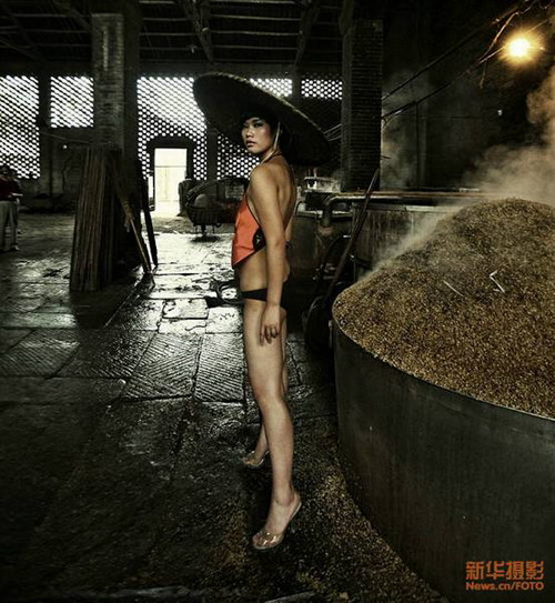 在男人的世界里,酒和色,是一把打开另一个世界的钥匙。但是,不要把酒和色放在一起来说事。也不要把酒当成色的借口。还不要把色当成酒的后劲。作者在泸州纳溪康庆坊拍这组片子,没有别的意思就想描绘酒之后,色之前的发生的一些事情。到了酒坊,在满屋子的酒香中,看见了一个很原真很朴素很乡土很那个什么的场景:青砖灰瓦,酒坛蒙尘,巨大的鸡公车沾满酒糟,散漫的阳光从砖格窗户照进来,看得见扬起的谷物尘埃......显然,这是一个拍平面大片的好地方。于是开始找模特,拍摄非常顺利,几个烤酒匠在肚兜模特面前晓得很羞涩很快活很纯真也很自然,丝毫没有影响拍摄的情绪和进度。(文:宁小刚图:宁小刚)