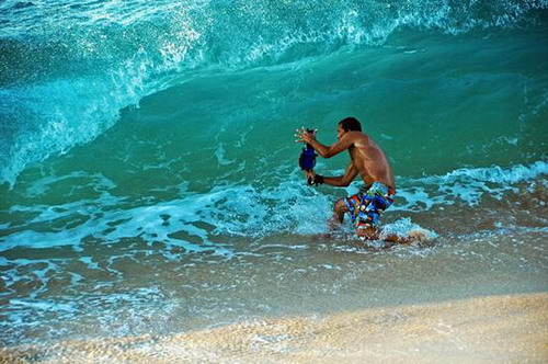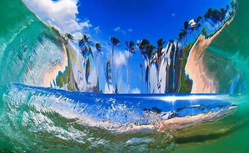 美国44岁的摄影师克拉克·里特尔(Clark Little)携重达4.5千克的相机,在夏威夷海岸冲浪,冲浪高度达15英尺(约合4.5米),并以独特视觉拍下了令人惊心动魄的浪卷。