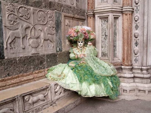威尼斯狂欢节最大的特点是它的面具,其次是它的华丽服饰。这一传统可追述到1700年前。权贵和穷人可以通过面具融合在一起。在面具的后面,社会差异暂时被消除。富人变成了穷人,而穷人成了富人。他们互相尊敬地打着招呼。在面具后面,年龄差异被消除,老人变年轻了,年轻人一下子老成持重起来。年轻人和小人物借助面具代表的权威把自己装扮成大人物。而老人极力将自己装扮得很年轻,甚至越无知越愚蠢越好,男人可以变成女人,女人也可以变成男人。