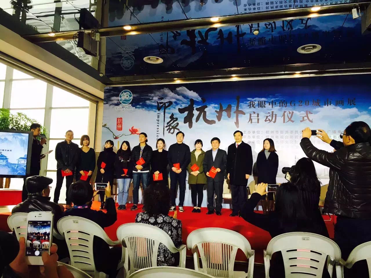 2月24日,“印象杭州--我眼中的G20城市”画展启动仪式在杭州文广集团举办,正式拉开了本次活动的序幕。活动现场,杭州市旅游委员会向10位韩国艺术家颁发“2016年杭州旅游文化大使”聘书,这十位韩国画家将成为宣传推广杭州旅游的“民间大使”,让更多的韩国游客了解杭州、喜爱杭州、来到杭州。