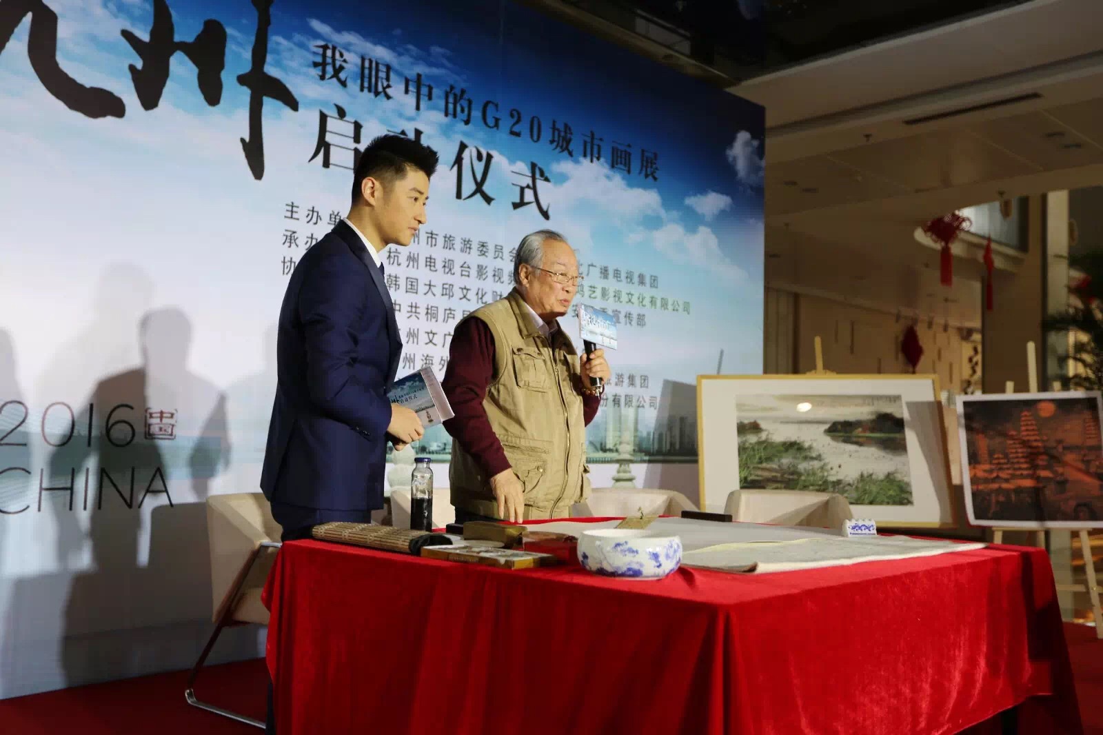 “印象杭州---我眼中的G20城市”画展由杭州市旅游委员会、杭州文广集团共同主办,杭州电视台4频道、浙江鸿艺影视文化有限公司承办。此次活动专门邀请韩国知名青年画家实地来杭进行采风创作,并在韩国各地举办巡回画展,活动旨在通过画家的眼睛和画笔描绘和诠释杭州极具特色的魅力,向韩国宣传推广美丽的杭州。