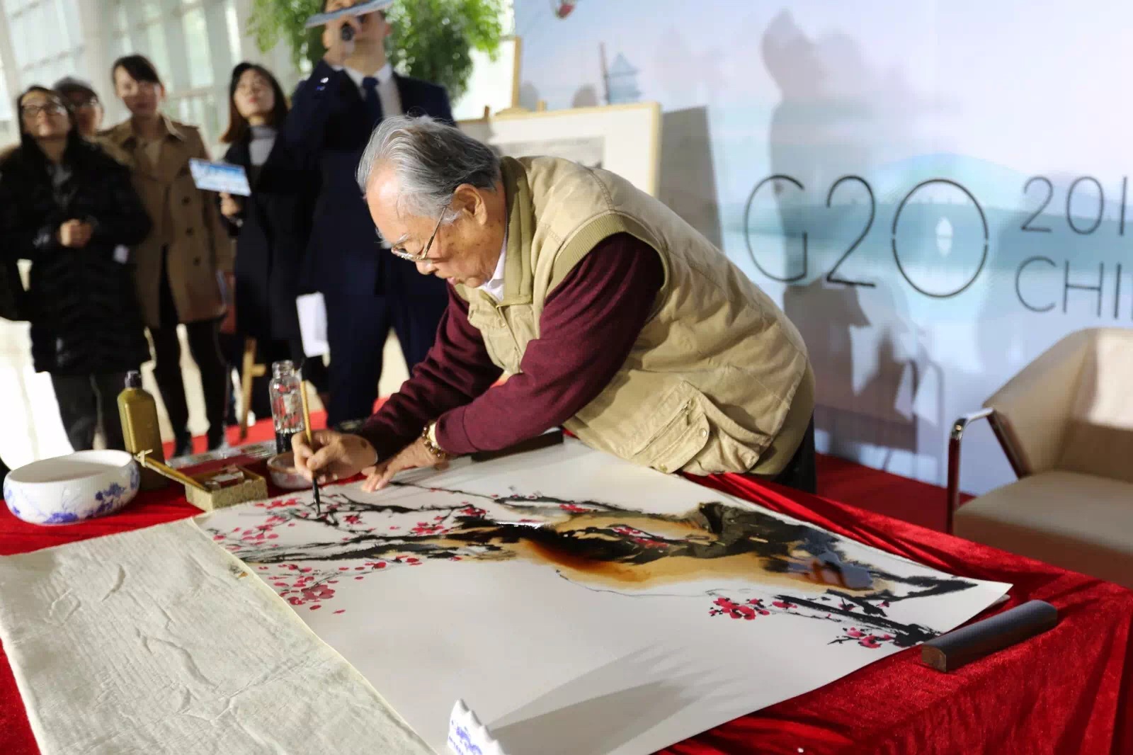 活动现场,主办方还邀请到了西冷名家、国家级国画大师、浙江省博物馆西湖书院名誉院长闵庚灿先生。出生在韩国仁川,生长在中国杭州的闵老先生从艺70多年,一直致力于中韩文化的双向交流,推动韩国的中国艺术热。