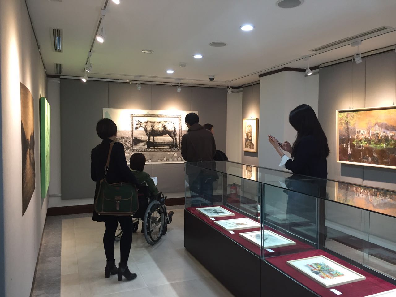 3月17日,中韩两国的青年画家在韩国首尔中国文化中心展出,中国驻韩国大使馆文化参赞兼首尔中国文化中心主任史瑞琳;中国国家旅游局驻首尔办事处科长梁江川;杭州电视台4频道副总监杨慧;韩国大邱文化财团代表沈载灿等领导和嘉宾出席了本次画展。