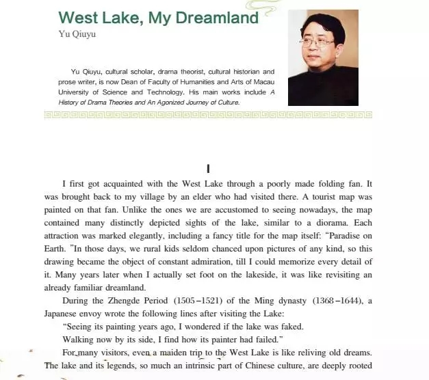 余秋雨《杭州印象》英文版节选