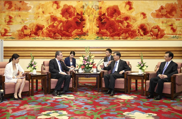 2016年7月22日,中国国务院副总理汪洋在北京会见世界贸易组织总干事阿泽维多