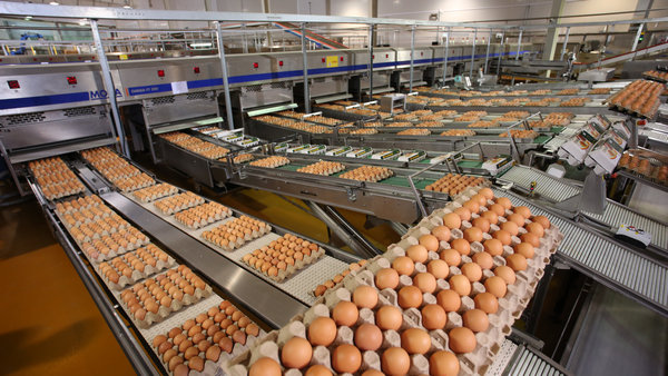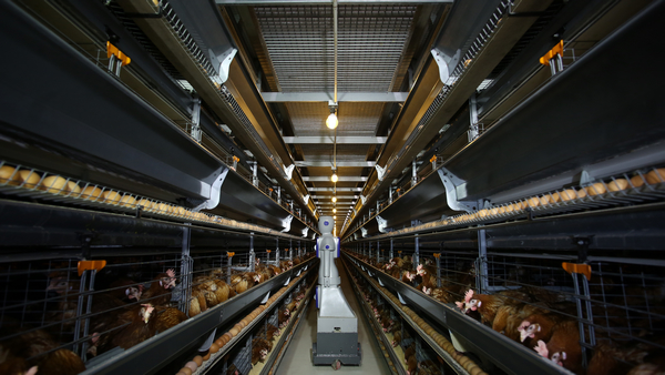 走过蛋鸡场的参观通道,可以看到全部引进欧美一流设备的鸡舍,那里采用全封闭式养殖方式,电脑系统监控,建立了国内最先进的互联网远程控制系统,整个生产过程实现无人接触。一座鸡舍约有16.8万只蛋鸡,仅配有一名饲养工程师,从喂水喂料到室内温湿度全程由一个机器人监控。就连后续的蛋品分级设备与液蛋加工设备生产过程也都采用国外自动化控制,避免人工接触造成二次污染,确保消费者购买到的都是完好无损、无致害病菌的清洁鸡蛋。