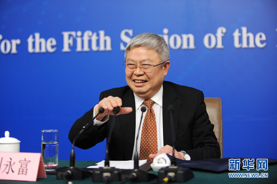 3月7日,十二届全国人大五次会议新闻中心举行记者会,邀请国务院扶贫办主任刘永富就“脱贫攻坚工作”的相关问题回答中外记者的提问。图为刘永富回答记者提问。新华网/中国政府网 孙韬 摄