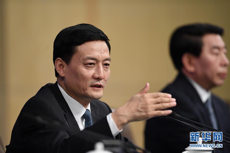 3月9日,十二届全国人大五次会议新闻中心举行记者会,邀请国务院国有资产监督管理委员会主任肖亚庆、副主任张喜武、副主任黄丹华和副秘书长、新闻发言人彭华岗就“国企改革”的相关问题回答中外记者的提问。这是肖亚庆在回答记者提问。 新华社记者 陈晔华 摄