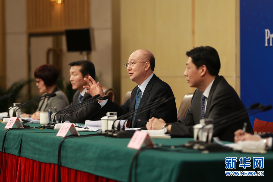 3月14日,十二届全国人大五次会议新闻中心举行记者会,邀请国家质检总局局长支树平、副局长兼国家认证认可监督管理委员会主任孙大伟、国家标准化管理委员会主任田世宏就“质量提升”的相关问题回答中外记者的提问。图为支树平回答记者提问。新华网/中国政府网 傅义洲 摄