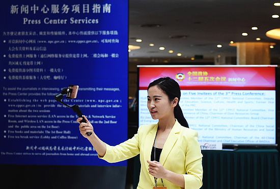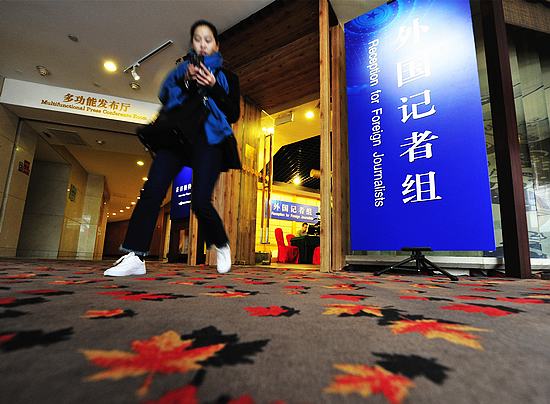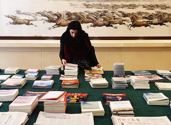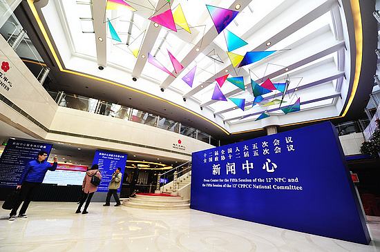 2017年3月2日,2017全国“两会”新闻中心启用。记者在新闻中心内看到采访报道国内外记者们忙碌的身影。《今日中国》摄影记者董宁报道。