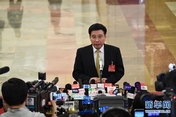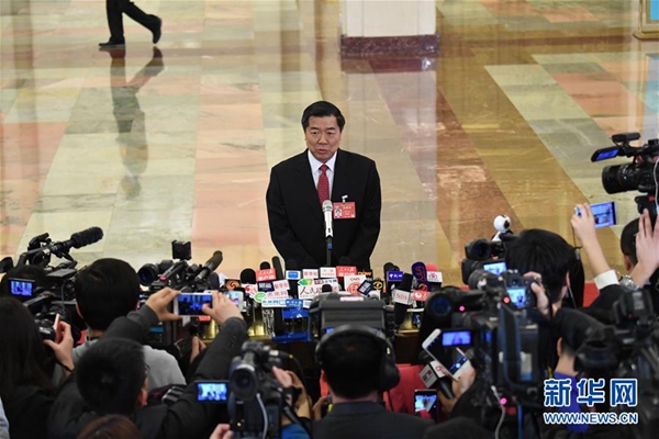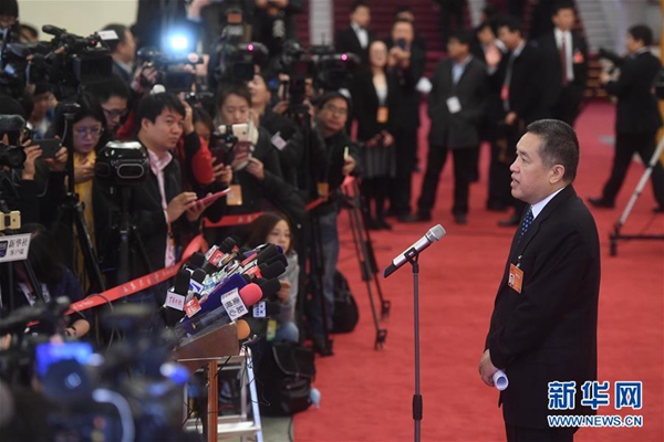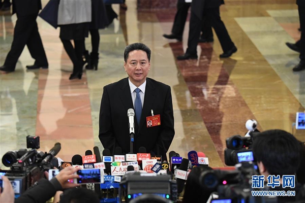 3月5日,第十二届全国人民代表大会第五次会议在北京人民大会堂开幕。这是国家工商行政管理总局局长张茅接受采访。 新华社记者 金良快 摄