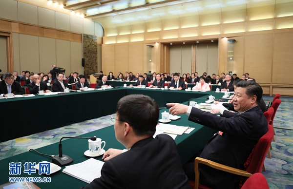 3月5日,中共中央总书记、国家主席、中央军委主席习近平参加十二届全国人大五次会议上海代表团的审议。新华社记者 马占成 摄