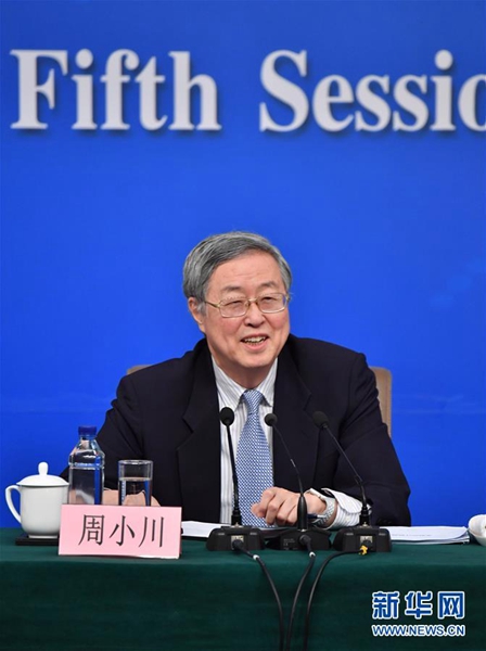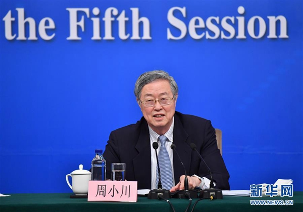 3月10日,十二届全国人大五次会议新闻中心举行记者会,邀请中国人民银行行长周小川、副行长易纲、副行长兼国家外汇管理局局长潘功胜、副行长范一飞就“金融改革与发展”的相关问题回答中外记者的提问。这是周小川在回答记者提问。新华社记者 李鑫 摄