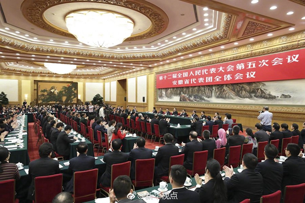 新华网北京3月10日电 李克强总理3月10日上午来到十二届全国人大五次会议安徽代表团参加审议。(据“新华视点”微博报道)