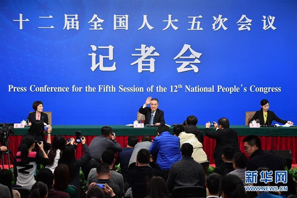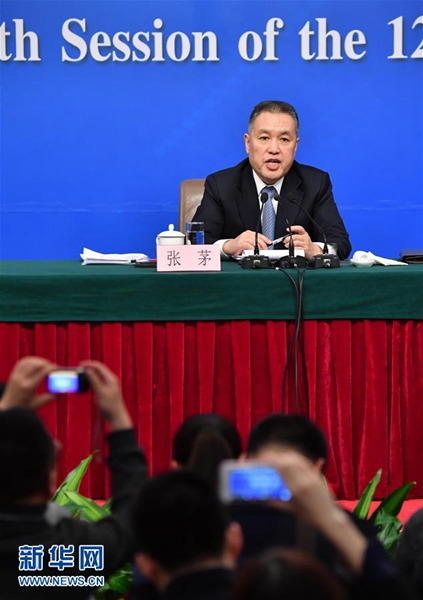 3月10日,十二届全国人大五次会议新闻中心举行记者会,邀请国家工商行政管理总局局长张茅就“深化商事制度改革”的相关问题回答中外记者的提问。新华社记者 李鑫 摄