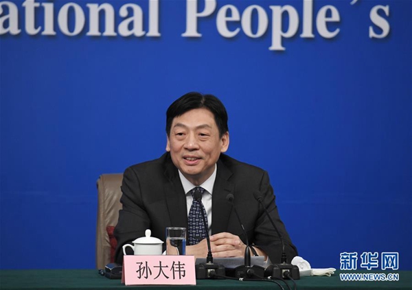 3月14日,十二届全国人大五次会议新闻中心举行记者会,邀请国家质检总局局长支树平、副局长兼国家认证认可监督管理委员会主任孙大伟、国家标准化管理委员会主任田世宏就“质量提升”的相关问题回答中外记者的提问。这是孙大伟在回答记者提问。新华社记者 赵颖全 摄