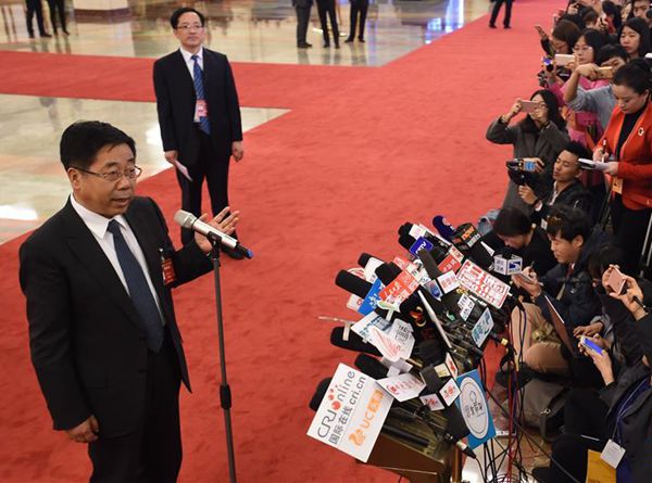 3月3日,中国人民政治协商会议第十二届全国委员会第五次会议在北京人民大会堂开幕。这是教育部部长陈宝生接受采访。