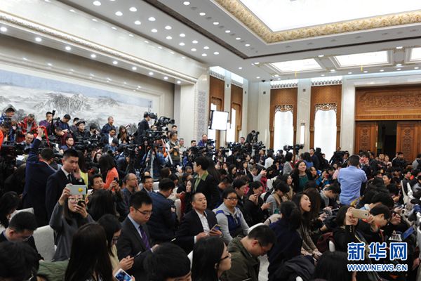 | 十二届全国人大五次会议将于3月4日上午11时在人民大会堂新闻发布厅举行新闻发布会,由大会发言人就大会议程和人大工作相关的问题回答中外记者的提问。 图为新闻发布会现场。新华网/中国政府网 翟子赫 摄 |