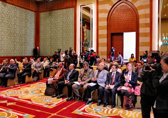 金字塔报业集团董事长艾哈迈德·纳贾尔在发言中强调,不同于西方国家霸权主义、零和主义,中国的和平复兴与互利共赢主张,为阿拉伯地区尤其是埃及带来巨大利好。他在发言中盛赞中国作为世界经济增长第一引擎,努力倡导并带头实践共商共建共享、构建人类命运共同体等全球化合作理念。