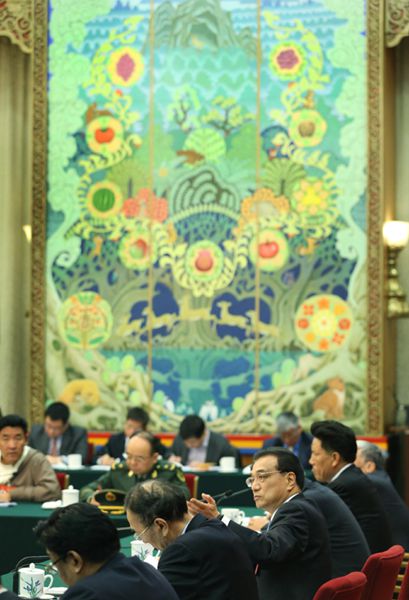 【李克强在西藏代表团两次道祝福:扎西德勒】李克强7日参加西藏代表团审议,恰逢藏历新年正月初十。总理落座后说:“今天还在藏历正月十五以里,我给大家拜个晚年:扎西德勒!”这一开场白让会议气氛变得活跃起来。当审议结束时,总理再次通过现场代表,转达他对自治区各族人民的衷心祝福:扎西德勒!