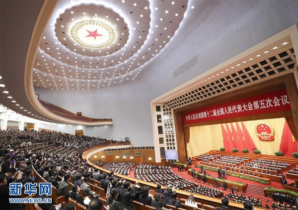 3月15日,第十二届全国人民代表大会第五次会议在北京人民大会堂举行闭幕会。 新华社记者 庞兴雷 摄