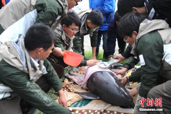 | 资料图 11月10日,安徽安庆,研究人员为长江江豚浇水。中新社记者 张娅子 摄 |