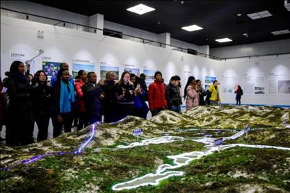 在张家口赛区规划临时展厅内,记者跟随到访的亚非官员一行参观了2020年冬奥会期间张家口赛区的建设规划。张家口赛区面积共66平方公里,共有8个奥运场馆,包含5个竞赛场馆和3个非竞赛场馆。其他重点配套项目包括张家口宁远国际机场、张家口高铁站、太子城高铁站(京张城际铁路的终点站)。