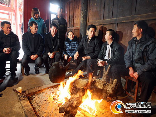 烤着疙瘩火,马华与群众同坐一条板凳交心谈心。