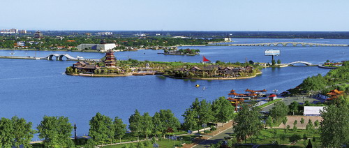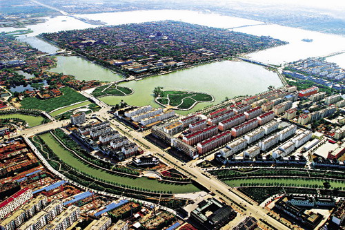 聊城是不折不扣的水城,在这8715平方公里的土地上,流域面积在30多平方公里以上的河流就有23条,流域面积在100平方公里以上的有3条。东昌湖的水面积达到6.3平方公里,是中国江北最大的城内湖泊,聊城市水的面积占到城市面积的1/3,形成了“城中有水,水中有城、城水一体,交相辉映”的独特风貌,让每一个走进聊城的人,仿佛走进了烟雨蒙蒙的江南水乡。正是这份南方气韵,让“江北水城”风生水起,运河古都,生态聊城成了众所追逐的“宛在水中央”的佳人。