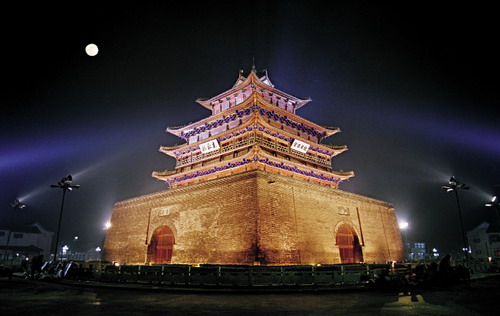 聊城的旅游线路很多:水上逍遥游、马顿河温泉游、水浒旅游线、运河旅游线、黄河旅游线……让我心灵触动的是登临光岳楼,人们眺望空间的时候,往往也望穿了时空。光岳楼是聊城古老文明的象征,作为聊城的城徽,它给走出聊城的人多少思乡的想象。而当我,一个外来人,沿着木梯拾阶而上时,我便一下子融入了这个城市嘎嘎作响的年轮。的确,光岳楼不再年轻,始建于洪武7年,即公元1374年,距今已有600多年的历史。本为修城余木修建的更鼓楼。后“因叹斯楼天下所无,虽黄鹤岳阳亦当望拜” 所以取其近鲁,而有光于岱岳也,而更名为光岳楼。