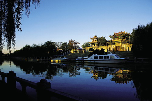 回到船上,已是夜色迷离,在朦胧的月色下泛舟水上,遥望流光溢彩的水城明珠大剧场,水城广场,运河博物馆,仿如仙境……聊城真的把水做活了,刚刚闭幕的2012中国江北水城 运河古都首届“水文化节”,拭亮了聊城曾名冠天下的光环……