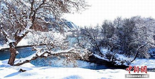 这片次生林位于喀什河流域。发源于天山深处的喀什河,自东向西纵贯新疆尼勒克县全境,全长达200多公里,独特的气候条件孕育着喀什河21万公顷原始次生林。一年四季,数万亩次生林都会给人们呈现不同的迷人景观:夏季的郁郁葱葱,绵延百里,犹如一条绿色的长龙;秋季层林尽染,整个河谷泛一派金黄,刹是迷人;冬天苍茫的林海在白雪的覆盖下,就像一条从天而下的玉龙。而初春时节,次生林在零星白雪的覆盖下别有一番韵味,给人一种神秘、俏媚之感。陈华林 摄