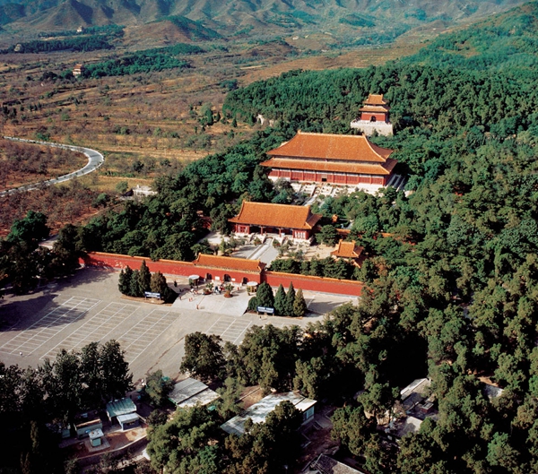 长陵,十三陵之首陵,是明朝第三位皇帝成祖朱棣和皇后徐氏的合葬陵墓,也是十三陵中建筑最早、面积最大、规模最宏伟、保存最完整、用料最考究的陵寝。陵内用于祭祀的陵恩殿是中国现存最大的楠木殿之一,陵恩殿建筑在汉白玉雕刻的三层台基上,顶部为中国古代建筑最高等级的重檐庑殿式,面阔九间,进深五间,象征皇帝的“九五”之位。支撑殿顶的60根楠木大柱十分粗壮,最粗的一根重檐金柱,高约12米,底径达到1.124米,为世间罕见佳木。殿中金砖铺地,所有木件均为金丝楠木加工而成,古色古香,1米多直径,12米高的六十根金丝楠木大柱,承托着2300平方米的重檐庑殿顶,雄伟壮观、举世无双。殿内陈列着定陵地下宫殿出土的文物数百件。殿中端坐于九龙宝座之上的永乐皇帝铜像,做工精湛考究,形象逼真,是世上精美绝伦的艺术佳作。