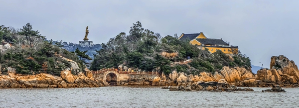普陀山风景区素有“海天佛国”、“南海圣境”的美称,是国务院审定公布的首批国家级重点风景名胜区。其中普陀山本岛雄踞于杭州湾以东烟波浩渺的莲花洋中,形似苍龙卧海,与世界著名渔港沈家门隔海相望。普陀山是中国佛教四大名山之一,同时也是著名的海岛风景旅游胜地。“海上有仙山,山在虚无缥缈间”,普陀山以其神奇、神圣、神秘的独特魅力,成为驰誉中外的旅游胜地。