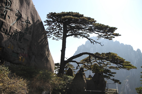 迎客松,黄山的十大名松之一,因形态如人伸出手臂欢迎远道而来的客人而得名