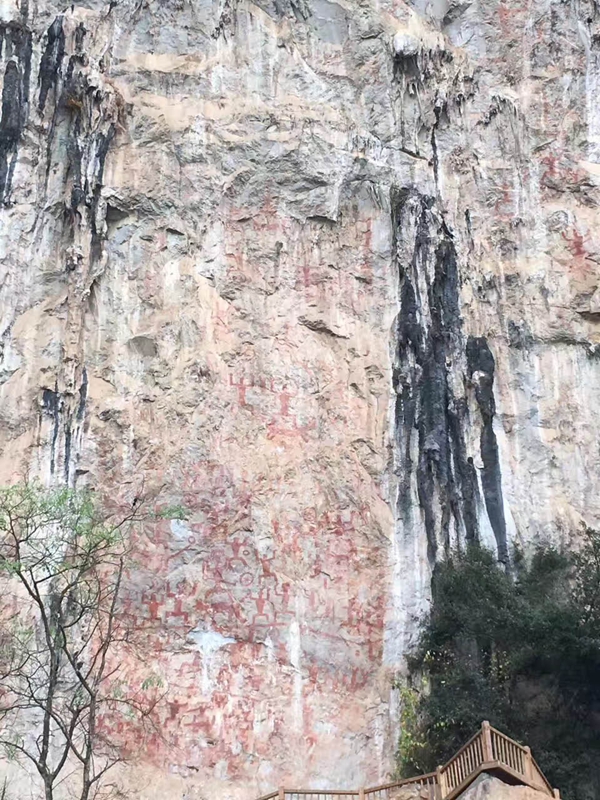 关于左江岩画最早的记载见于宋代李石所著的《续博物志》,因花山属于亚热带季风气候,拥有独特的喀斯特地貌,以岩画为核心,凭借其特殊的自然环境,造就了花山岩画文化景观这一“自然与人的共同作品”。