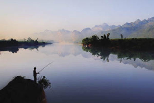 左江蜿蜒流淌千折百回,两岸青山似如翡翠,奇山秀水美不胜收。白头叶猴在茫茫青山中跳跃嬉戏,白鹭于青山绿水间翩翩起舞;两岸连片蔗海一望无边。明代地理学家、旅行家徐霞客当年曾深入左江流域的扶绥、崇左、大新等地探测地貌,搜奇揽胜,对左江的壮美景象赞叹不已:“余谓阳朔山峭濒江,无此岸之石;建溪水激多石,无此石之奇;虽连峰夹嶂,远不累三峡,溱泊一处,促不及武彝,而疏密宛转,在仲伯间。至其一派玲珑通漏,别出一番艳巧,足夺二山之席矣!”花山岩画与江水交相辉映,一派生机盎然的景象。