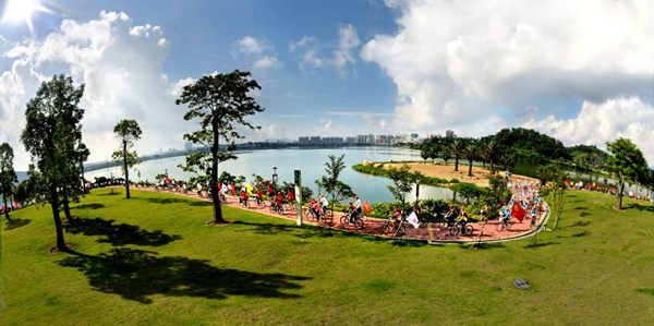 自行车手在绿道上飞驰 图/何异能