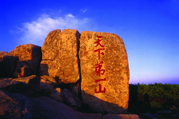 “天下第一山”刻石,位于岱顶。泰山五岳独宗,称之“天下第一山”当之无愧