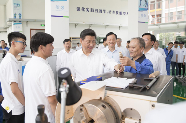 习近平考察职校 共勉“崇德尚能 砺学敦行”
