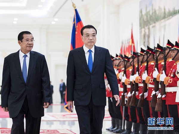 李克强表示,中柬是近邻,传统友谊深厚。中国始终尊重柬埔寨的主权和独立,坚定支持柬埔寨走符合本国国情的发展道路。中方愿以两国建交60周年为契机,继续同柬方密切高层交往,深化各领域务实合作,密切人文等领域的交流,同时为柬埔寨发展经济,尤其是改善民生提供力所能及的帮助,携手打造中柬具有战略意义的命运共同体。