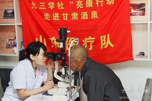 2014年8月4日至10日,九三学社组织山东省鲁南眼科医院的专家途径数千公里奔赴甘肃酒泉,在酒泉市中医院开展“亮康行动.酒泉行”活动,通过连续多日艰苦奋战,这次活动取得了圆满成功,顺利完成了白内障手术88例。
