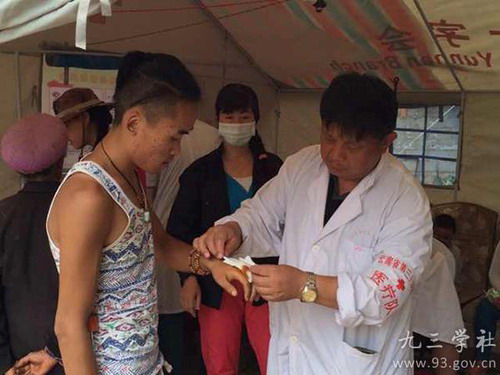 8月7日,是云南省第三人民医院应急医疗队进驻重灾区营盘村的第四天。截至16时,全天共处治伤病员65名,其中重伤2名,转诊1名,静脉输液20名,为2名伤员实施了手术,并巡诊患者50名。