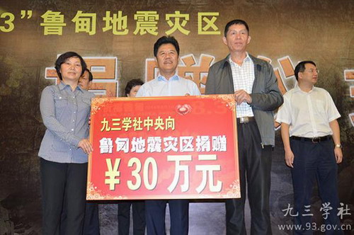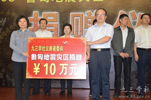 - 统战系统心系鲁甸灾民 九三学社两级组织热心捐赠